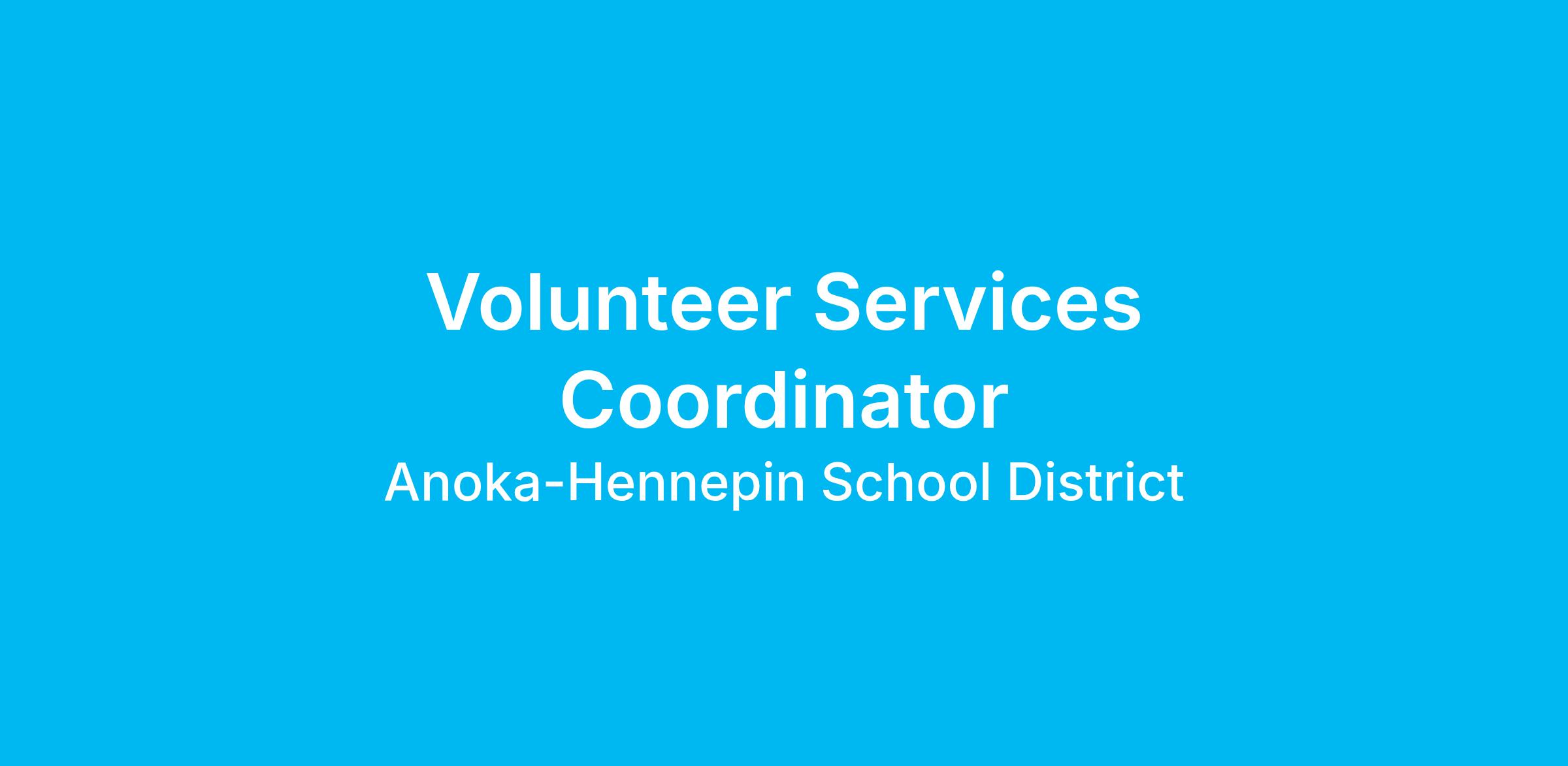 Preferred Qualifications: 4 year college degree preferred. Experience in school parent organizations, paid volunteer coordination, public speaking, supervisory and management preferred. An understanding of the Anoka-Hennepin Volunteer Services Program preferred.